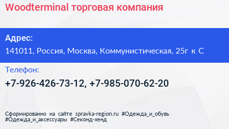 Woodterminal, торговая компания по адресу 141011, Россия, Москва, Коммунистическая, 25г к С в дальнейшем Организация, размещена в следующих категориях:
