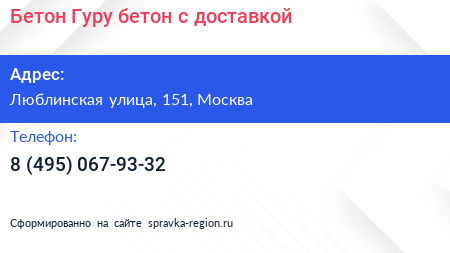 Бетон-Гуру - бетон с доставкой по адресу Люблинская улица, 151, Москва в дальнейшем Организация, размещена в следующих категориях: