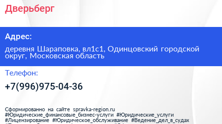Дверьберг по адресу деревня Шараповка, вл1с1, Одинцовский городской округ, Московская область в дальнейшем Организация, размещена в следующих категориях:
