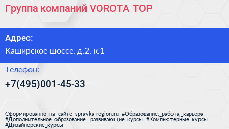 Группа компаний «VOROTA TOP» по адресу Каширское шоссе, д.2, к.1 в дальнейшем Организация, размещена в следующих категориях: