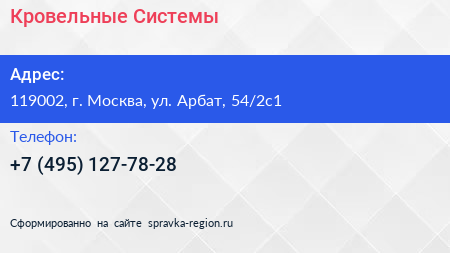 Кровельные Системы по адресу 119002, г. Москва, ул. Арбат, 54/2с1 в дальнейшем Организация, размещена в следующих категориях: