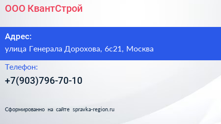 ООО КвантСтрой по адресу улица Генерала Дорохова, 6с21, Москва в дальнейшем Организация, размещена в следующих категориях: