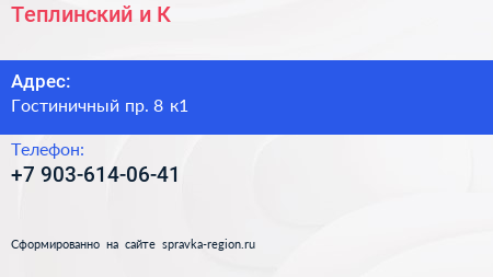 Теплинский и К по адресу Гостиничный пр. 8 к1 в дальнейшем Организация, размещена в следующих категориях: