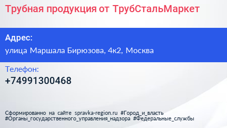 Трубная продукция от ТрубСтальМаркет по адресу улица Маршала Бирюзова, 4к2, Москва в дальнейшем Организация, размещена в следующих категориях: