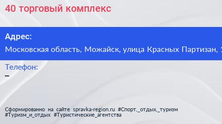 40, торговый комплекс по адресу Московская область, Можайск, улица Красных Партизан, 1 в дальнейшем Организация, размещена в следующих категориях: