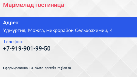 Мармелад, гостиница по адресу Удмуртия, Можга, микрорайон Сельхозхимии, 4 в дальнейшем Организация, размещена в следующих категориях: