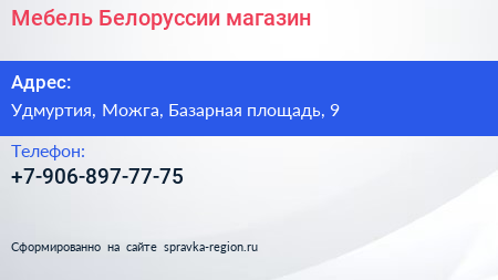 Мебель Белоруссии, магазин по адресу Удмуртия, Можга, Базарная площадь, 9 в дальнейшем Организация, размещена в следующих категориях: