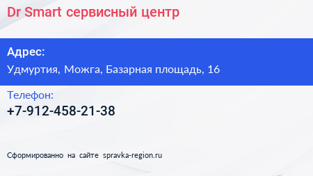 Dr. Smart, сервисный центр по адресу Удмуртия, Можга, Базарная площадь, 16 в дальнейшем Организация, размещена в следующих категориях: