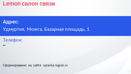 Lemon, салон связи по адресу Удмуртия, Можга, Базарная площадь, 1 в дальнейшем Организация, размещена в следующих категориях: