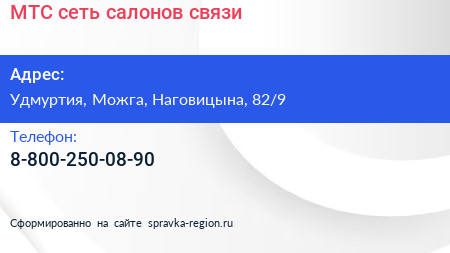 МТС, сеть салонов связи по адресу Удмуртия, Можга, Наговицына, 82/9 в дальнейшем Организация, размещена в следующих категориях: