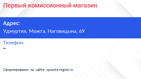 Первый комиссионный магазин по адресу Удмуртия, Можга, Наговицына, 69 в дальнейшем Организация, размещена в следующих категориях: