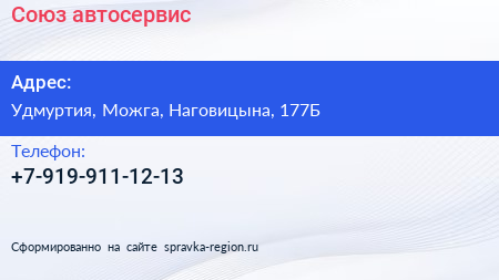 Союз, автосервис по адресу Удмуртия, Можга, Наговицына, 177Б в дальнейшем Организация, размещена в следующих категориях: