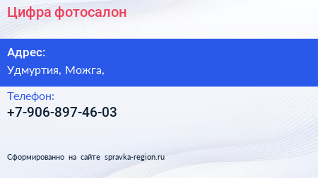 Цифра, фотосалон по адресу Удмуртия, Можга, в дальнейшем Организация, размещена в следующих категориях: