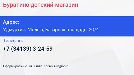 Буратино, детский магазин по адресу Удмуртия, Можга, Базарная площадь, 20/4 в дальнейшем Организация, размещена в следующих категориях: