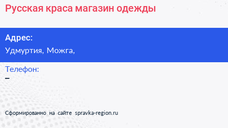 Русская краса, магазин одежды по адресу Удмуртия, Можга, в дальнейшем Организация, размещена в следующих категориях: