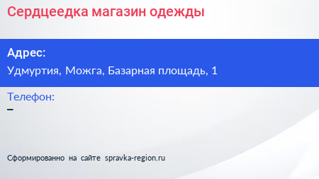 Сердцеедка, магазин одежды по адресу Удмуртия, Можга, Базарная площадь, 1 в дальнейшем Организация, размещена в следующих категориях: