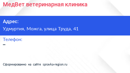 МедВет, ветеринарная клиника по адресу Удмуртия, Можга, улица Труда, 41 в дальнейшем Организация, размещена в следующих категориях:
