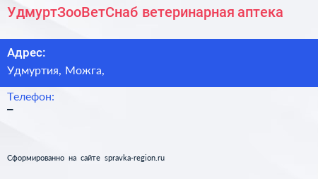УдмуртЗооВетСнаб, ветеринарная аптека по адресу Удмуртия, Можга, в дальнейшем Организация, размещена в следующих категориях: