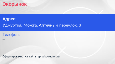 Экорынок по адресу Удмуртия, Можга, Аптечный переулок, 3 в дальнейшем Организация, размещена в следующих категориях: