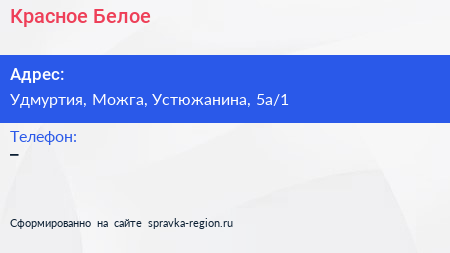 Красное & Белое по адресу Удмуртия, Можга, Устюжанина, 5а/1 в дальнейшем Организация, размещена в следующих категориях: