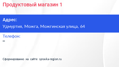 Продуктовый магазин №1 по адресу Удмуртия, Можга, Можгинская улица, 64 в дальнейшем Организация, размещена в следующих категориях: