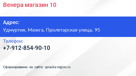 Венера, магазин №10 по адресу Удмуртия, Можга, Пролетарская улица, 95 в дальнейшем Организация, размещена в следующих категориях: