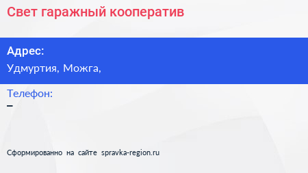 Свет, гаражный кооператив по адресу Удмуртия, Можга, в дальнейшем Организация, размещена в следующих категориях: