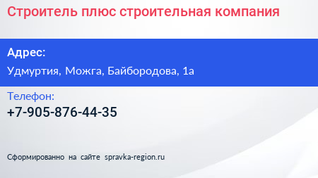 Строитель плюс, строительная компания по адресу Удмуртия, Можга, Байбородова, 1а в дальнейшем Организация, размещена в следующих категориях: