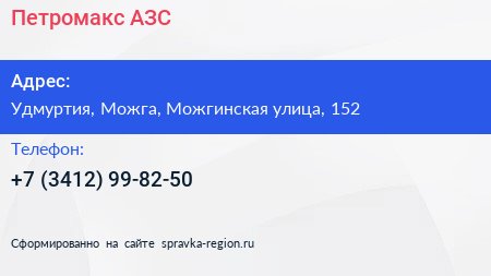 Петромакс, АЗС по адресу Удмуртия, Можга, Можгинская улица, 152 в дальнейшем Организация, размещена в следующих категориях: