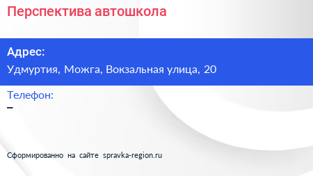 Перспектива, автошкола по адресу Удмуртия, Можга, Вокзальная улица, 20 в дальнейшем Организация, размещена в следующих категориях: