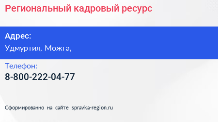 Региональный кадровый ресурс по адресу Удмуртия, Можга, в дальнейшем Организация, размещена в следующих категориях: