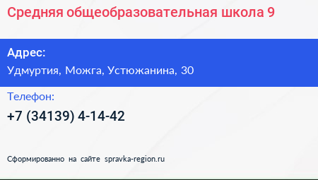 Средняя общеобразовательная школа №9 по адресу Удмуртия, Можга, Устюжанина, 30 в дальнейшем Организация, размещена в следующих категориях: