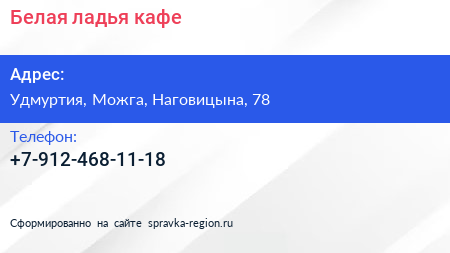 Белая ладья, кафе по адресу Удмуртия, Можга, Наговицына, 78 в дальнейшем Организация, размещена в следующих категориях: