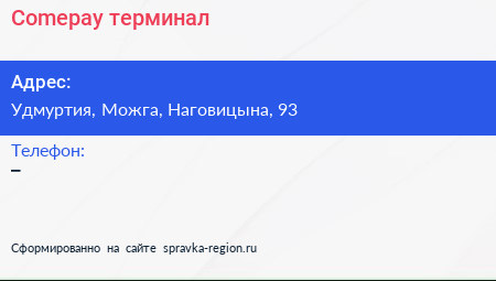 Comepay, терминал по адресу Удмуртия, Можга, Наговицына, 93 в дальнейшем Организация, размещена в следующих категориях: