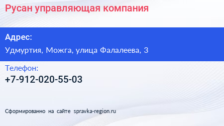 Русан, управляющая компания по адресу Удмуртия, Можга, улица Фалалеева, 3 в дальнейшем Организация, размещена в следующих категориях: