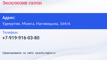 Эксклюзив, салон по адресу Удмуртия, Можга, Наговицына, 164/6 в дальнейшем Организация, размещена в следующих категориях: