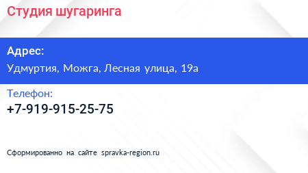 Студия шугаринга по адресу Удмуртия, Можга, Лесная улица, 19а в дальнейшем Организация, размещена в следующих категориях: