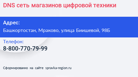 DNS, сеть магазинов цифровой техники по адресу Башкортостан, Мраково, улица Биишевой, 98Б в дальнейшем Организация, размещена в следующих категориях: