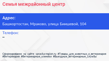Семья, межрайонный центр по адресу Башкортостан, Мраково, улица Биишевой, 104 в дальнейшем Организация, размещена в следующих категориях: