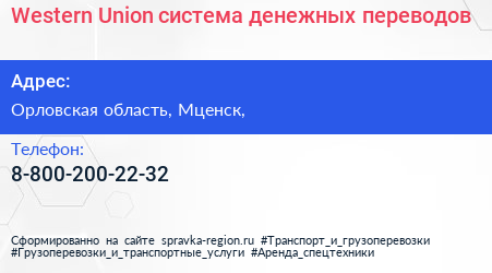 Western Union, система денежных переводов по адресу Орловская область, Мценск, в дальнейшем Организация, размещена в следующих категориях: