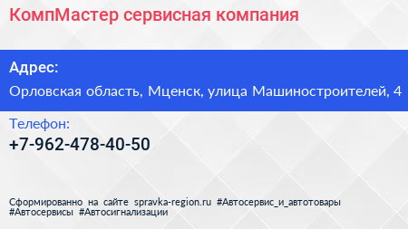 КомпМастер, сервисная компания по адресу Орловская область, Мценск, улица Машиностроителей, 4 в дальнейшем Организация, размещена в следующих категориях: