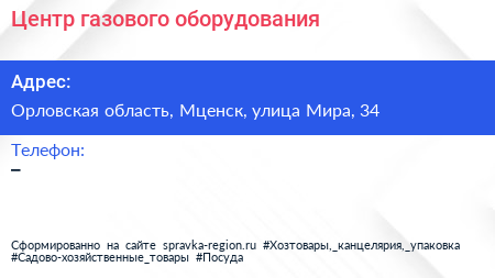 Центр газового оборудования по адресу Орловская область, Мценск, улица Мира, 34 в дальнейшем Организация, размещена в следующих категориях: