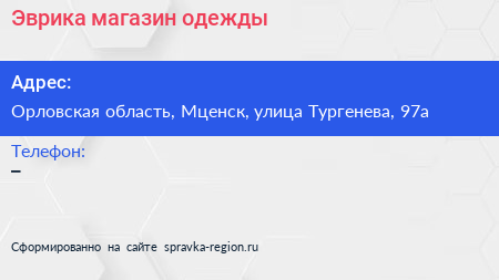 Эврика, магазин одежды по адресу Орловская область, Мценск, улица Тургенева, 97а в дальнейшем Организация, размещена в следующих категориях: