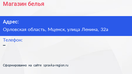 Магазин белья по адресу Орловская область, Мценск, улица Ленина, 32а в дальнейшем Организация, размещена в следующих категориях: