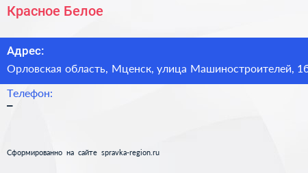 Красное & Белое по адресу Орловская область, Мценск, улица Машиностроителей, 1б в дальнейшем Организация, размещена в следующих категориях: