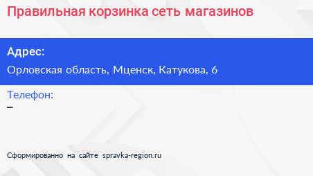 Правильная корзинка, сеть магазинов по адресу Орловская область, Мценск, Катукова, 6 в дальнейшем Организация, размещена в следующих категориях: