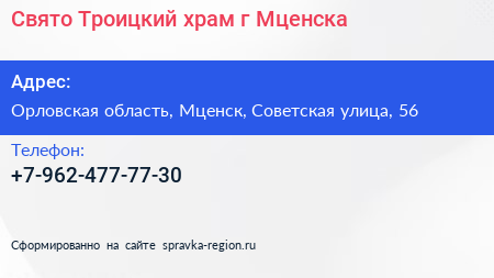 Свято-Троицкий храм г. Мценска по адресу Орловская область, Мценск, Советская улица, 56 в дальнейшем Организация, размещена в следующих категориях: