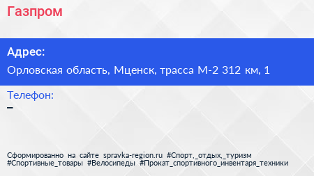 Газпром по адресу Орловская область, Мценск, трасса М-2 312 км, 1 в дальнейшем Организация, размещена в следующих категориях: