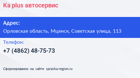 Ka-plus, автосервис по адресу Орловская область, Мценск, Советская улица, 113 в дальнейшем Организация, размещена в следующих категориях: