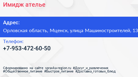Имидж, ателье по адресу Орловская область, Мценск, улица Машиностроителей, 13 в дальнейшем Организация, размещена в следующих категориях: